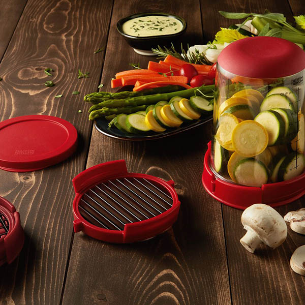 با فشار دادن غذا از طریق تیغه ها و داخل ظرف، سریعتر و یکنواخت تر برش می دهد.