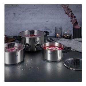 مجموعه قابلمههای Locarno با طراحی ساده و مدرن، از استیل ضدزنگ ۱۸/۱۰ با پرداخت مات ساخته شدهاند و برای انواع پختوپز روزمره ایدهآل هستند. این قابلمهها در چهار سایز مختلف عرضه میشوند تا نیازهای متنوع آشپزی را پوشش دهند.