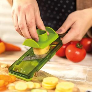 جایگزینی مفید برای ماندولین های بزرگ. هویج، سیب زمینی، پنیر و موارد دیگر را مانند یک حرفه ای برش دهید. تیغه فولاد ضد زنگ فوق العاده تیز از نازک کاغذ تا ضخامت ۳.۵ میلی متر تنظیم می شود. همراه با محافظ دستی برای محافظت از انگشتان شما در حین برش.